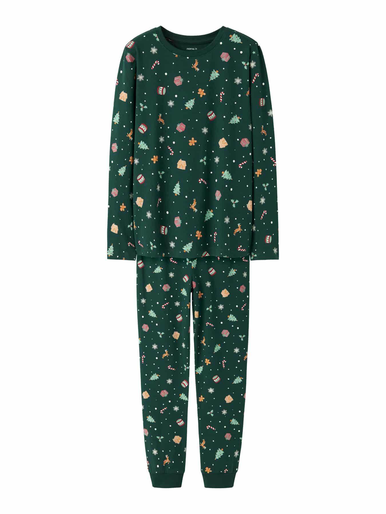 Gør december ekstra magisk med årets jule nattøj fra Name It. Sættet består af en langærmet bluse og matchende bukser. Den elastiske linning i bukserne sikre en god pasform.