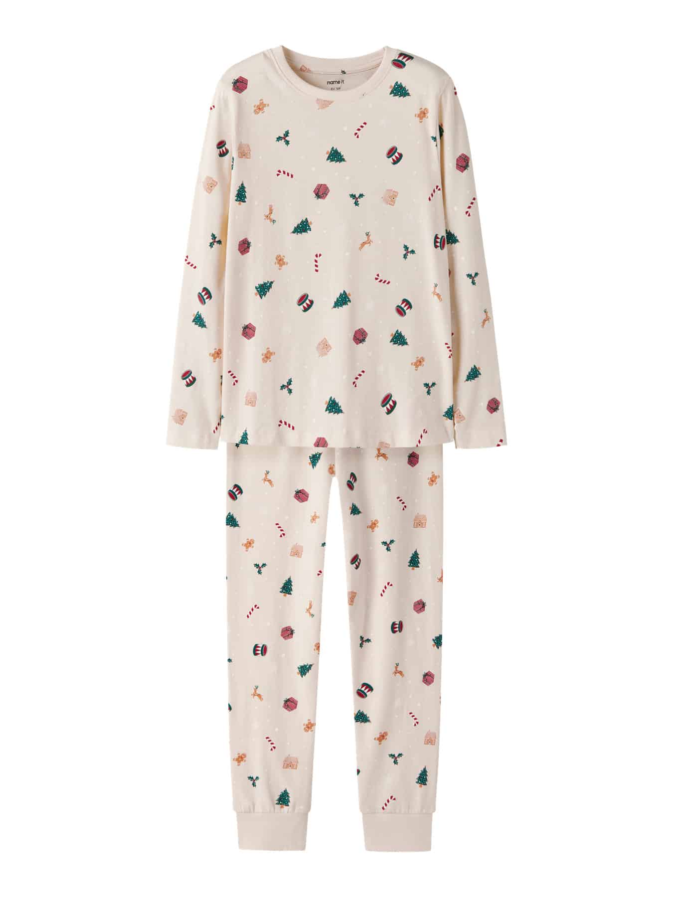 Gør december ekstra magisk med årets jule nattøj fra Name It. Sættet består af en langærmet bluse og matchende bukser. Den elastiske linning i bukserne sikre en god pasform.